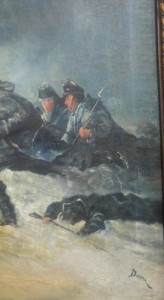Tabloul atacul de la smrdan are n prim plan soldai czui la pmnt, deasupra crora ali soldai se avnt n lupt, iar fundalul dominat de mbulzeala i fumul exploziilor spun n continuare povestea btliei.