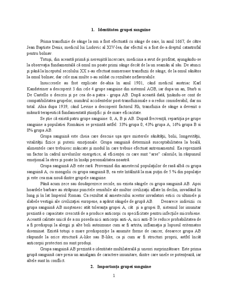 Primii oameni erau vanatori iscusiti, deci carnea (proteinele) reprezentatau principala sursa de energie. Majoritatea antigenelor de grup sanguin sunt de natură glicoproteică. Grupa sanguina este o carateristica care se mosteneste de la parinti.