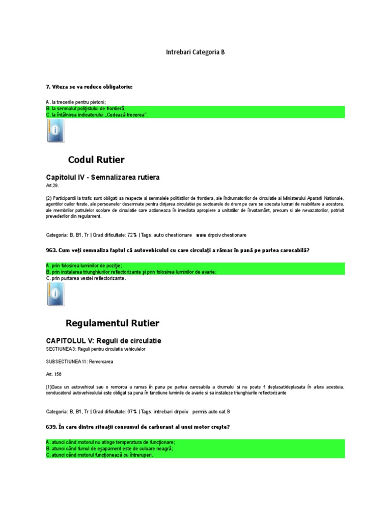Permisul de conducere eliberat pentru categoria a este valabil şi pentru autovehiculele din subcategoriile am, a1 şi a2. Utilizarea pe autostrada a limitatorului de viteza pentru autovehiculele dotate cu acest sistem are ca efect: 9)utilizarea pe autostrada a limitatorului de viteza pentru autovehiculele dotate cu acest sistem are ca efect 19)cum veti proceda corect pentru a intra pe autostrada folosind banda de intrare (accelerare)