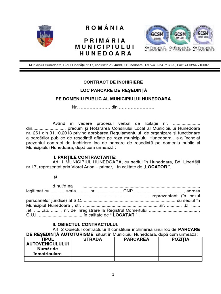 untuk "Contract De Comodat Auto Pentru Loc De Parcare"